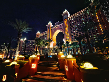 We stayed at the legendary Atlantis, situated on the Jumeirah Palm. I knew that it will be big, but - as everything in Dubai - it is just huge. It was quite impressive to drive there in the evening, where you could see the monument from very far away, nicely illuminated and enthroned at the very front of the Jumeirah Palm; like a castle. The theme of the hotel is the lost city of Atlantis. It was the first hotel on the artificially built Palm Island and was opened in September 2008.